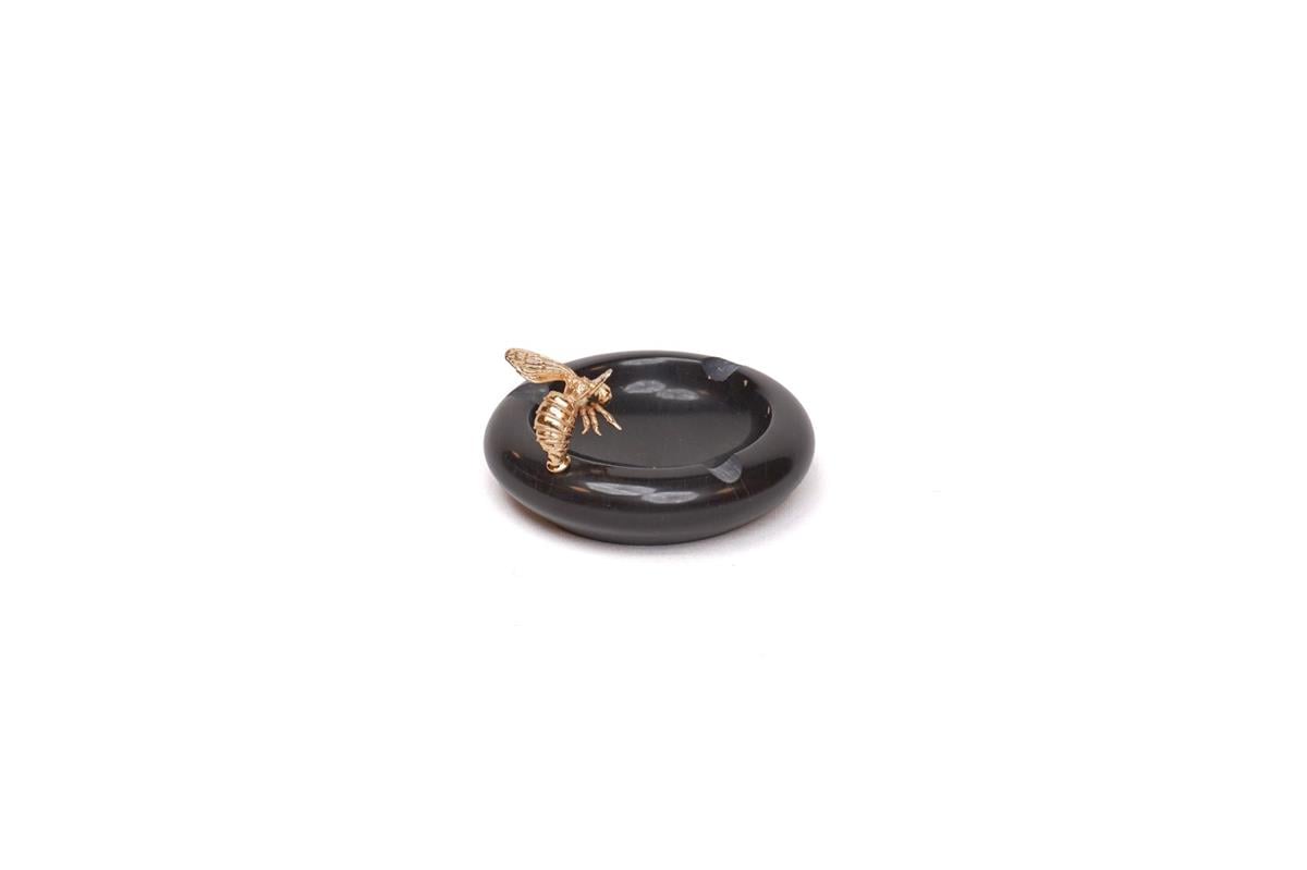 Arı Detaylı Yuvarlak Küllük - Siyah