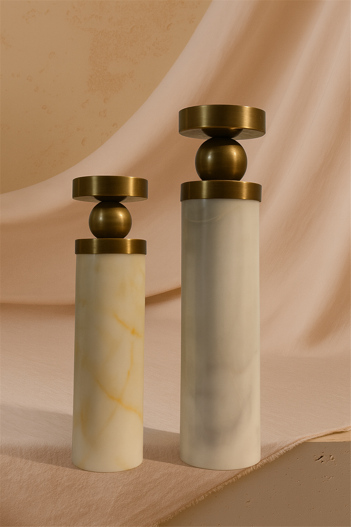 Beyaz Mermer Kaideli Eskitme Şamdan