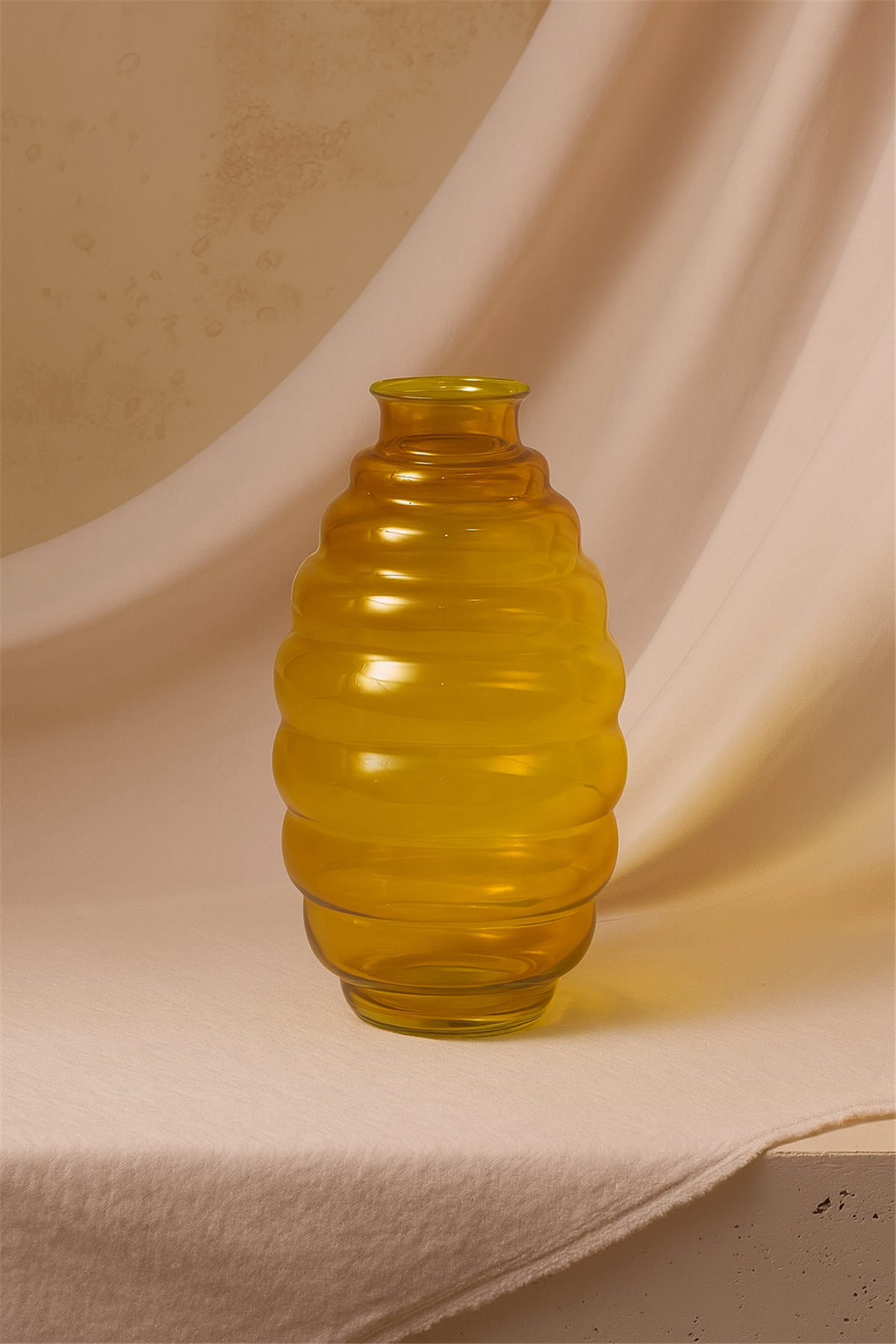 Seffaf Cam Vazo Petek 37cm Turuncu