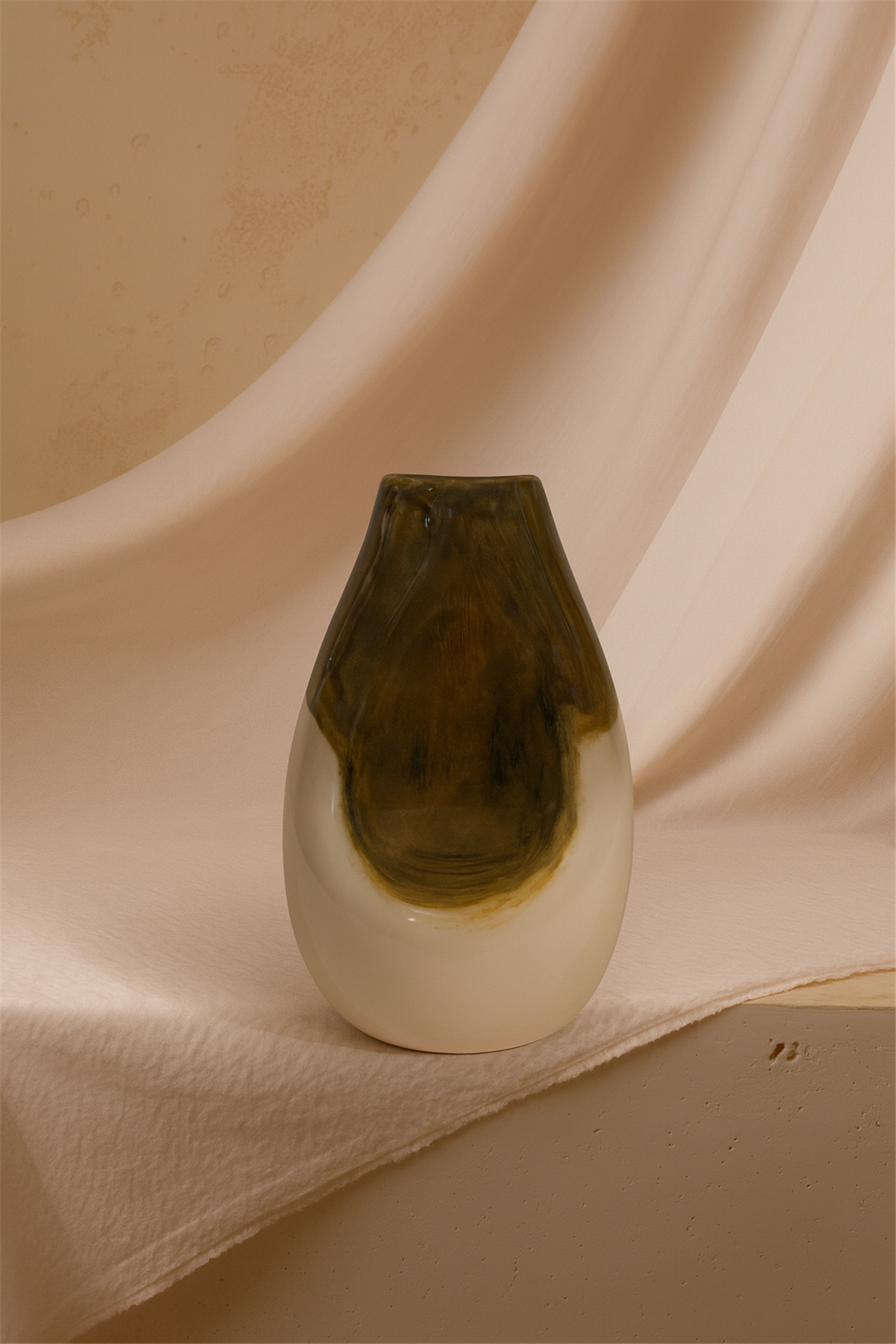 l yapımı seramik formu ile her biri benzersiz olan bu vazolar, üst kısmındaki altın kahverengi tonlarla sıcaklık katarken, alt kısımdaki sade açık tonlarla modern bir denge sunar. Mat ve parlak yüzeylerin uyumuyla öne çıkan bu dekoratif objeler, ister tek başına ister birlikte kullanıldığında şıklığıyla dikkat çeker. Salon, antre ya da ofis alanlarınızda sofistike bir atmosfer yaratmak isteyenler için ideal bir seçimdir. Malzeme: Seramik Renk: Altın Kahverengi - Açık Bej İçerik: 2 farklı boyda vazo Kullanım: Dekoratif amaçlı, iç mekân kullanımı için uygundur. Özellik: El işçiliği nedeniyle her ürün kendine özgüdür.