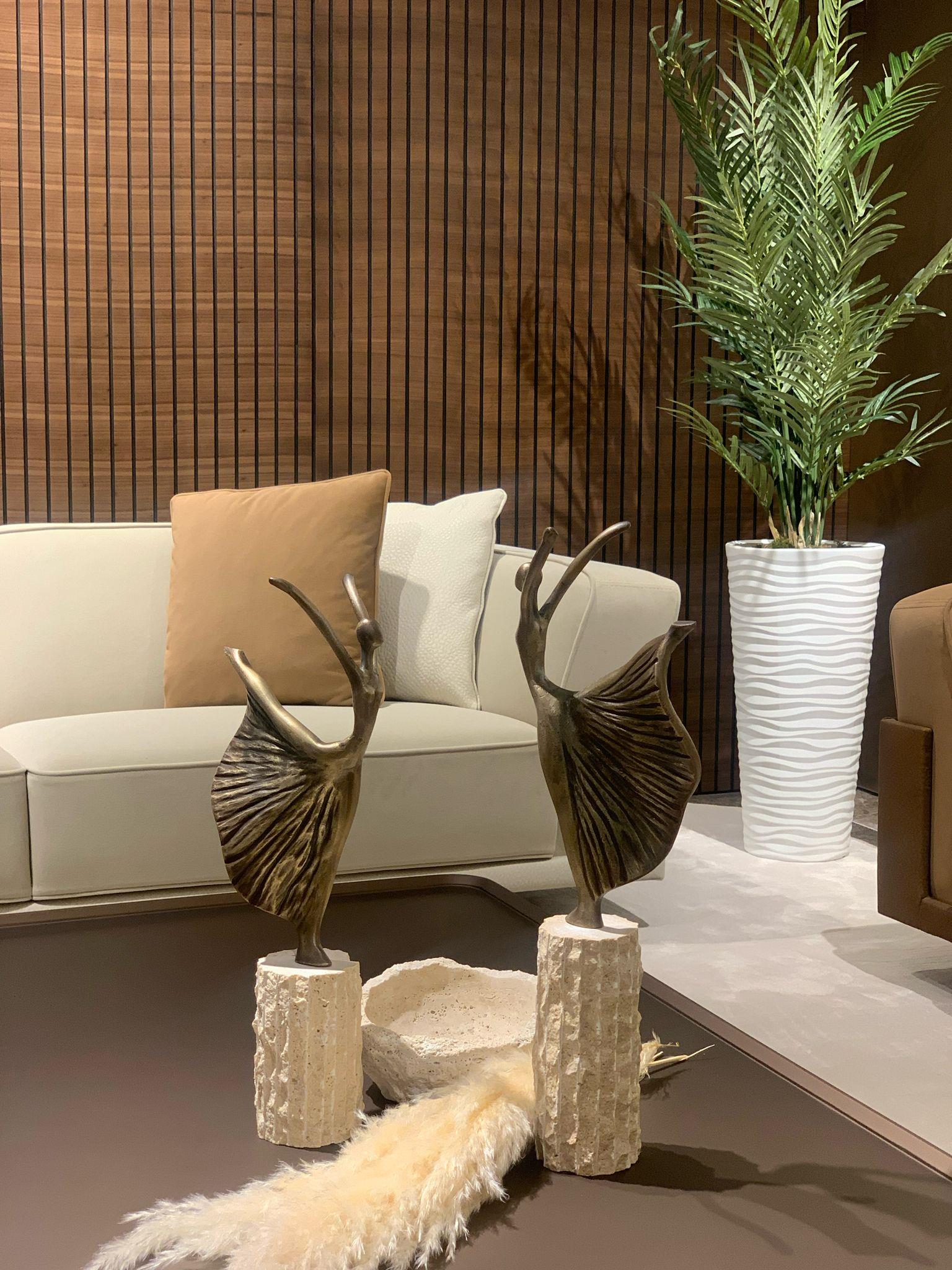 Traverten Kaideli Eskitme Balerin Takım Obje