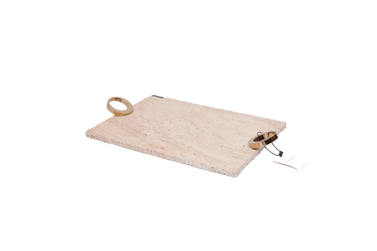 Traverten Patlatma Kenarlı Gold Metal Kulplu Tepsi-Küçük