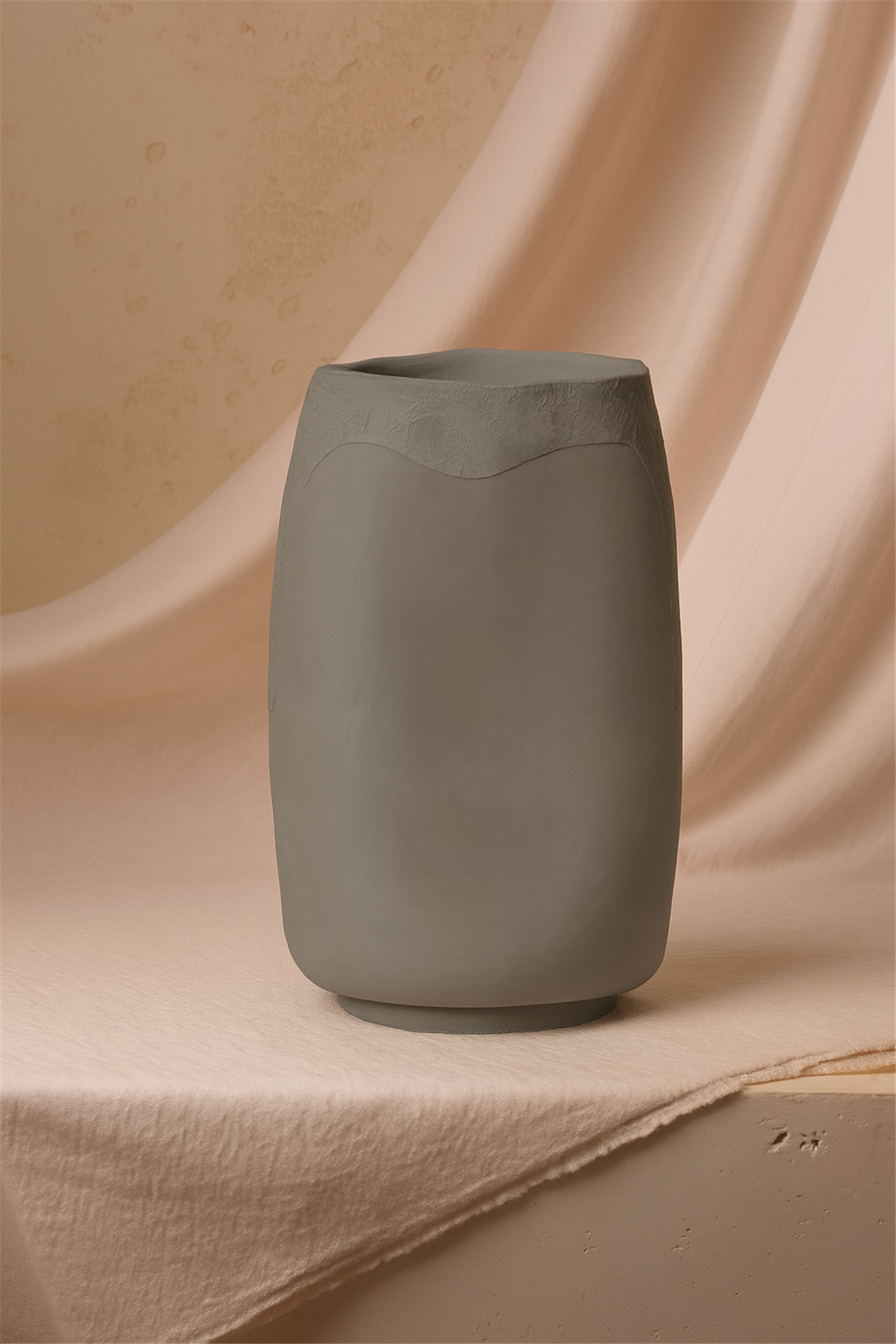 Yassı Tasarım Vazo Gri Büyük Boy